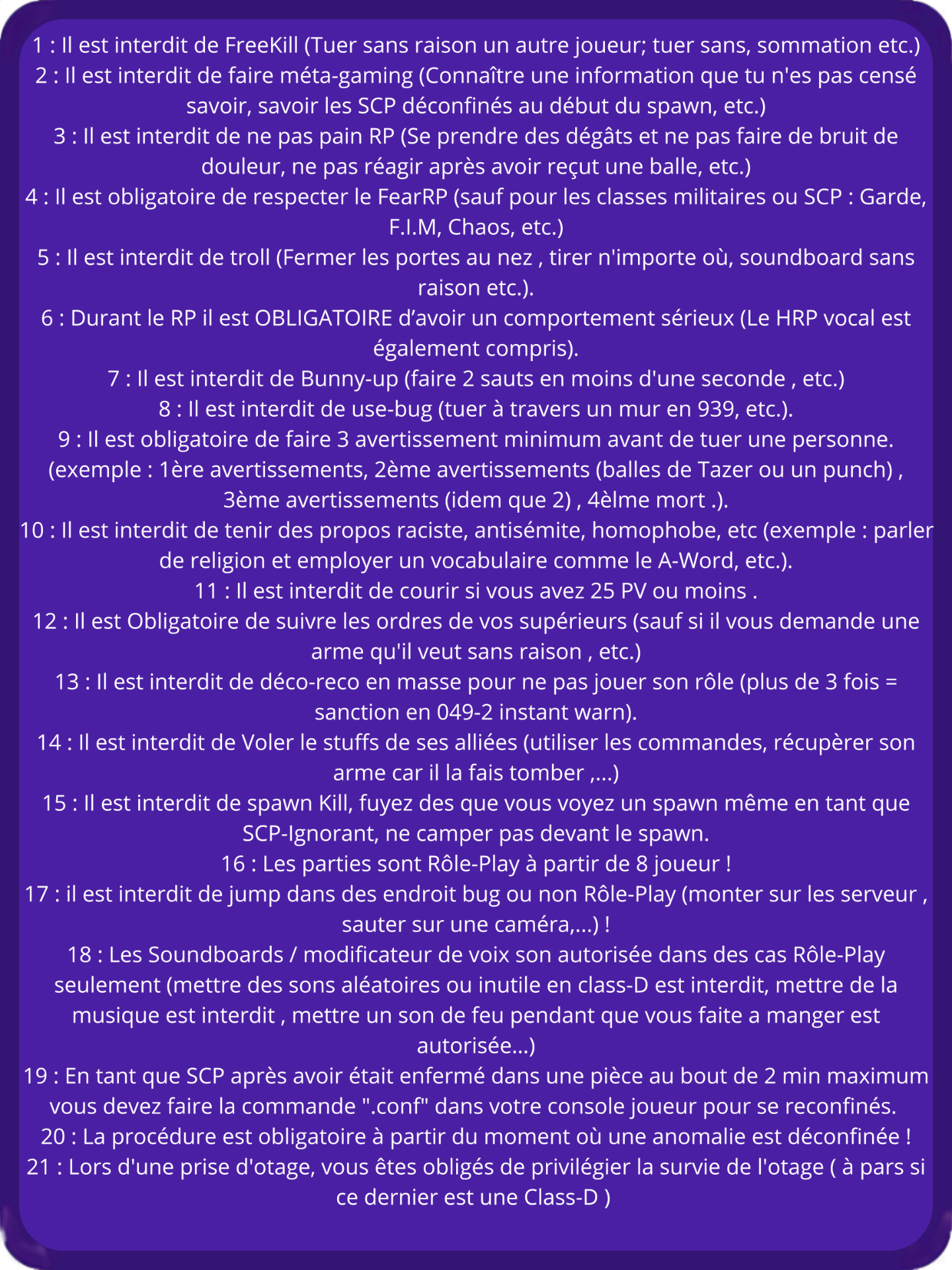 Règlement Basique :