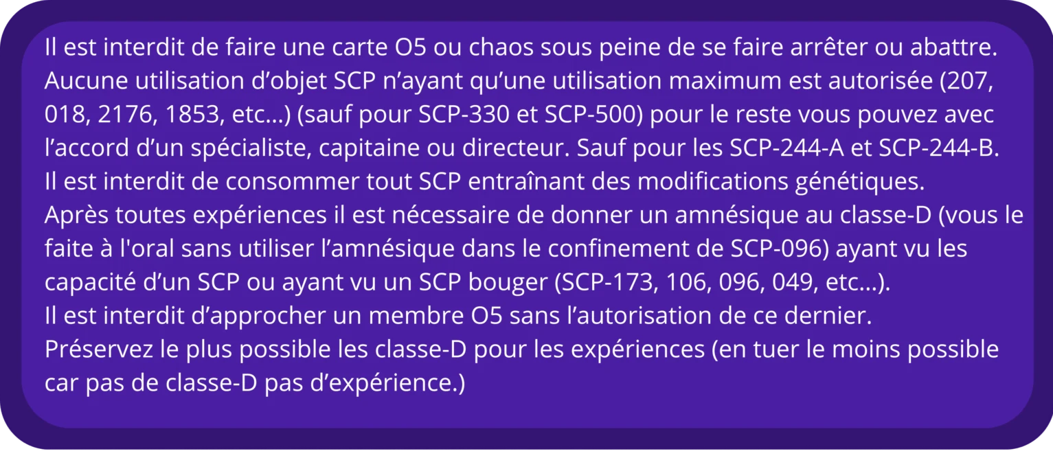 Règles Ethique :